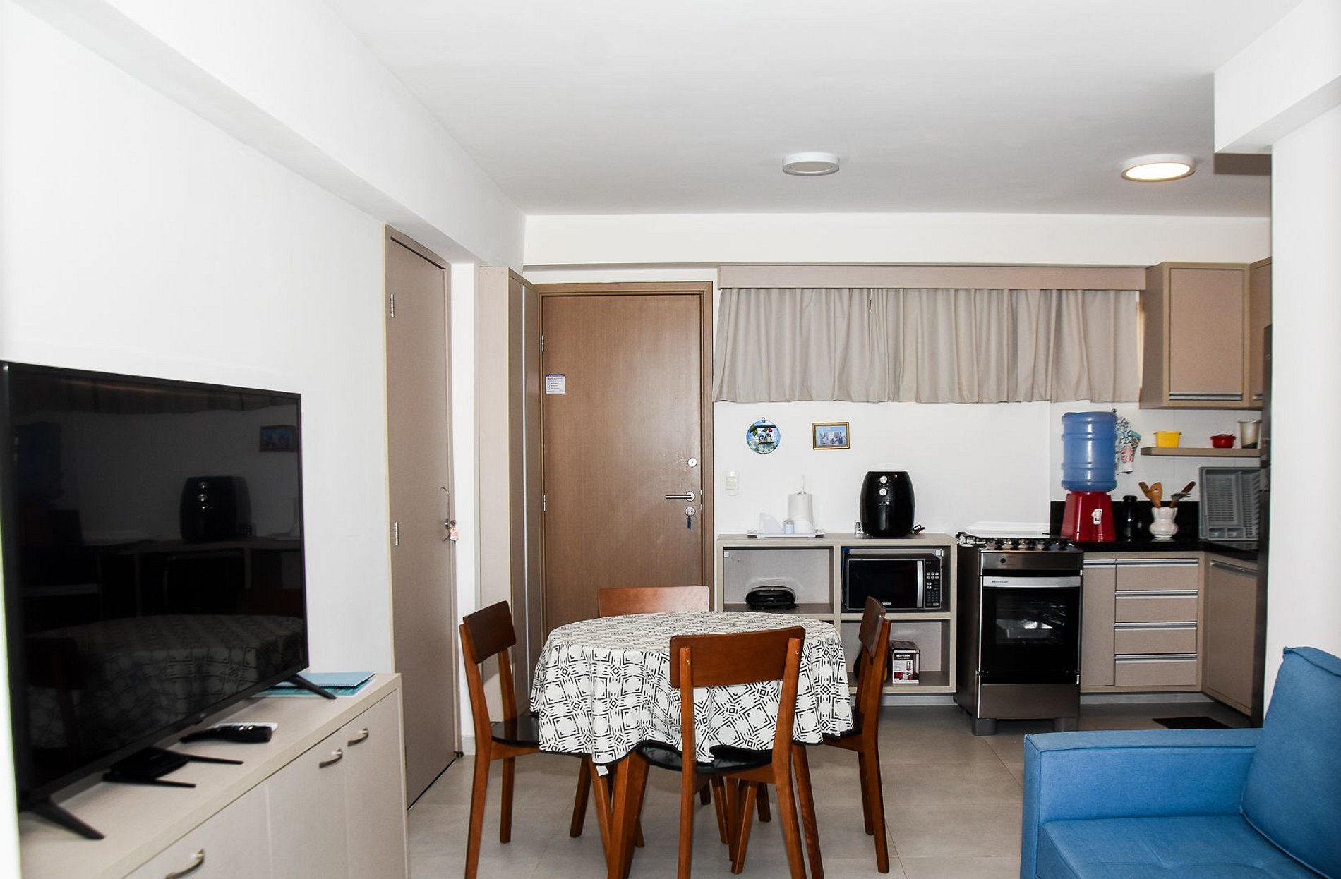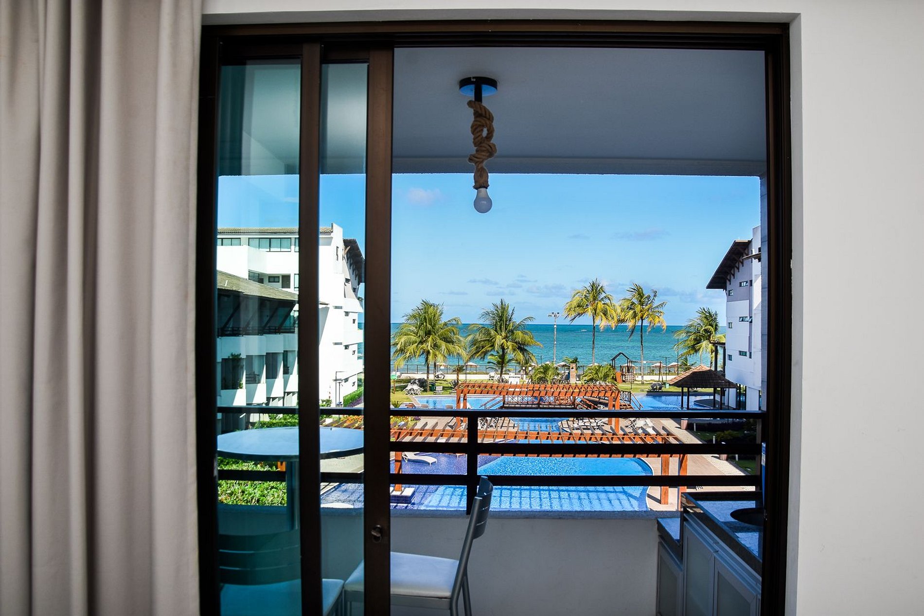 > The condo has bikes for rental, TV screening room, games, a gym, volley court, table soccer, barbecue area and swimming pool.