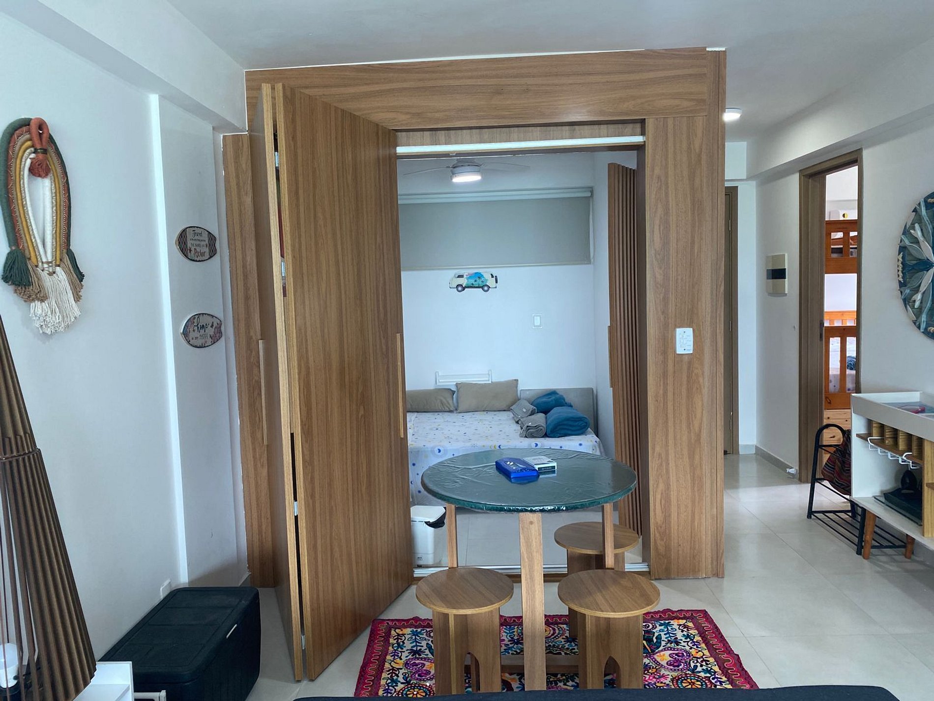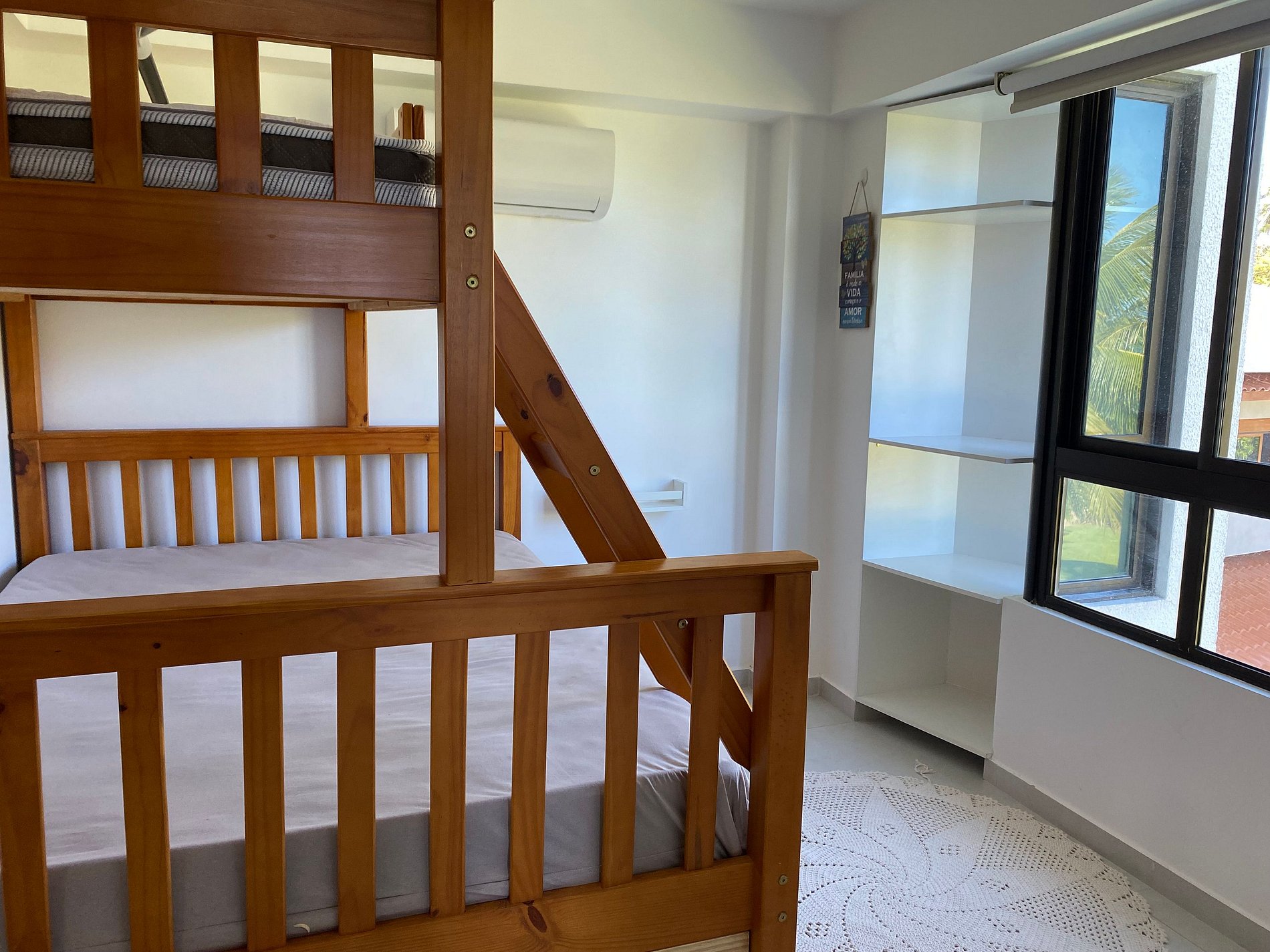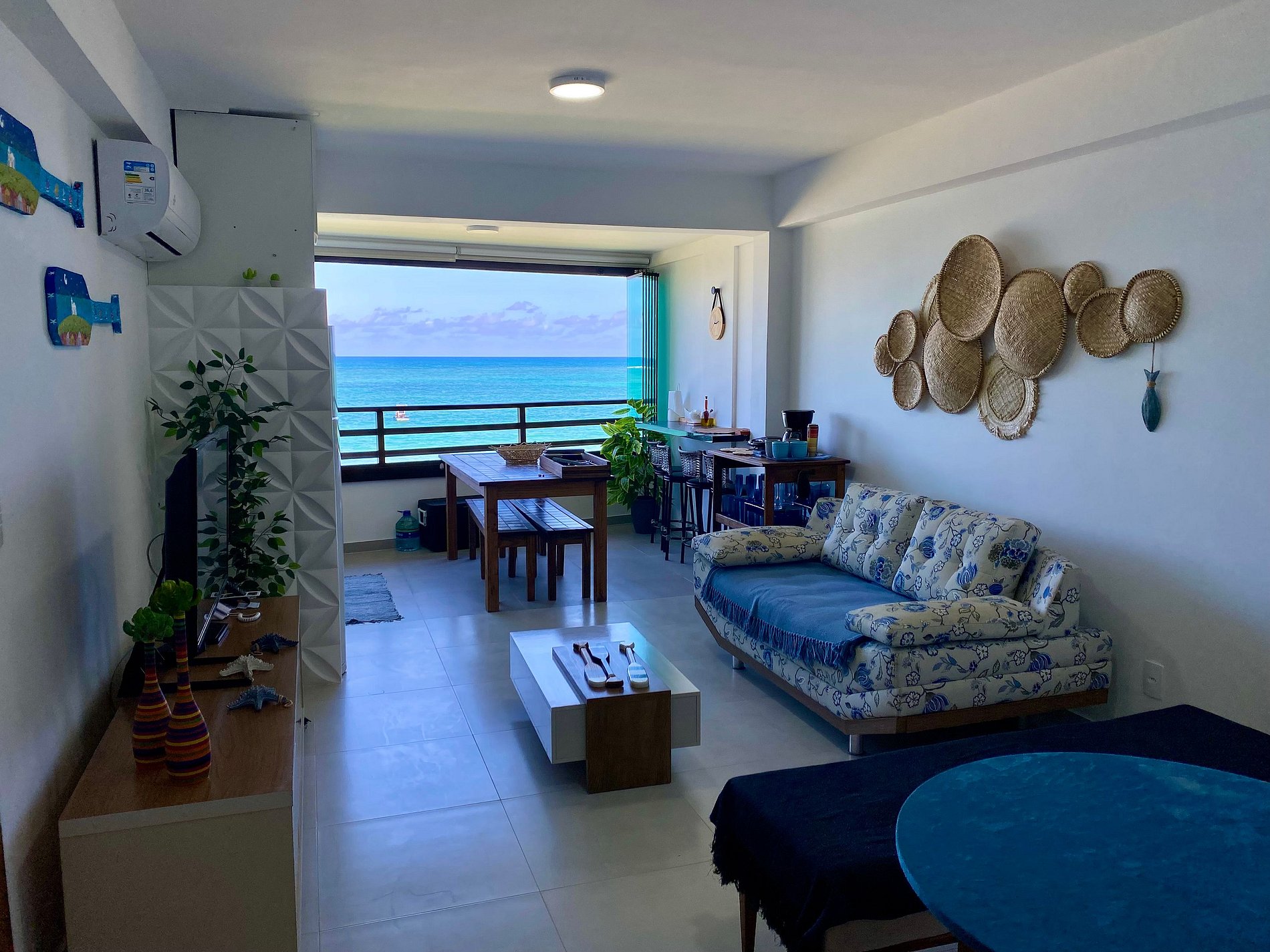 O apartamento Aquaman dispõe de ar-condicionado nos 2 quartos principais e na sala, TV, Wi-fi exclusivo. O quarto principal, de casal, é uma suíte muito espaçosa e bem decorada. Um segundo quarto tem beliche -- sendo a cama de baixo casal; e um terceiro quarto com sofá-cama. Dois banheiros, mesa de jantar, cozinha totalmente equipada e uma vista deslumbrante, de frente para o mar!