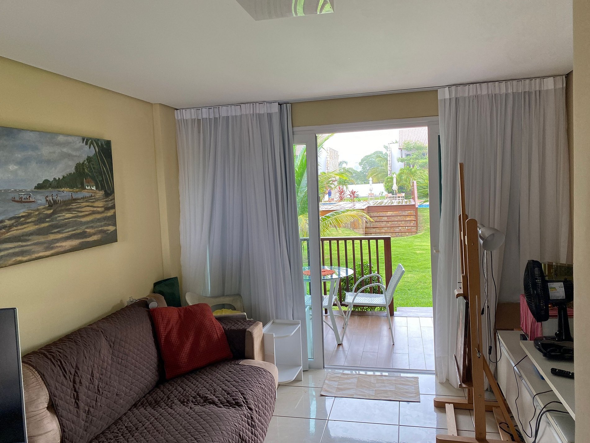 O apartamento fica localizado no térreo.